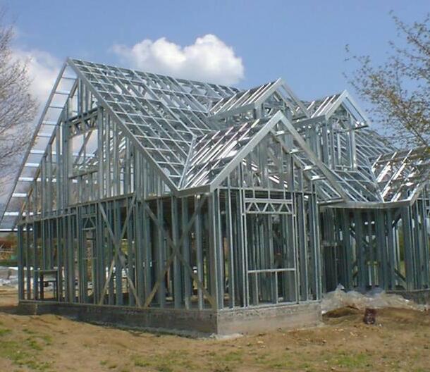 Galvanized steel frame can be roll formed as steel studs for use as a structural or non-structural building material for both external and partition walls in both residential, commercial and industrial construction projects. The dimension of the room is established with horizontal track that is anchored to the floor and ceiling to outline each room. Customized steel frame stud and track with reinforcement.
